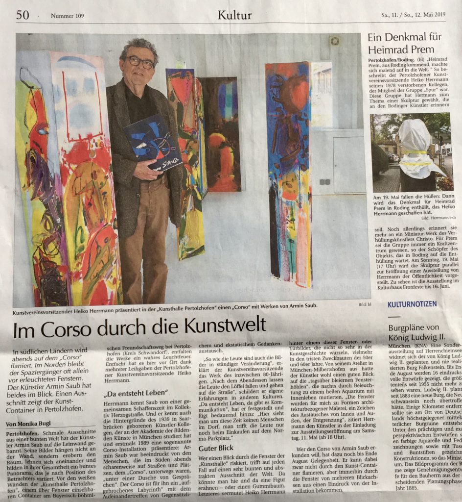 Die Idee für diese Installationen mit Fensterbildern entstand, weil Armin Saub von der Gewohnheit der Menschen in südlichen Ländern, jeden Abend scharenweise zum „Corso“ auf die Straßen und Plätze zu gehen, sehr beeindruckt war: „Es muss ein Bedürfnis sein, sich zwischen den Häusern, unter einer Dusche aus Gesprächen, gleichzeitig zusammenzufinden und auseinanderzugehen… Der Corso ist das aufgebrochene Labyrinth der Passagen durch Zeitloses und Mode, des ekstatischen Gedankenaustausches, des spielerisch angenommenen Ein- oder Missverständnisses, das korrigierbar gehalten wird durch das Erscheinen der Menschen“. Auf diese urbane Identität im Zusammenleben, im Vermischen von Öffentlichem und Privatem, beziehen sich Armin Saubs improvisierte Corso-Installationen, die Lust machen möchten an wechselseitiger Ergänzung zwischen den Bildern und den Betrachtern, die sich in diesem Bildercorso bewegen. Erstmals präsentierte Saub eine Corso-Installation in der Otto-Galerie in München, im April 1989.