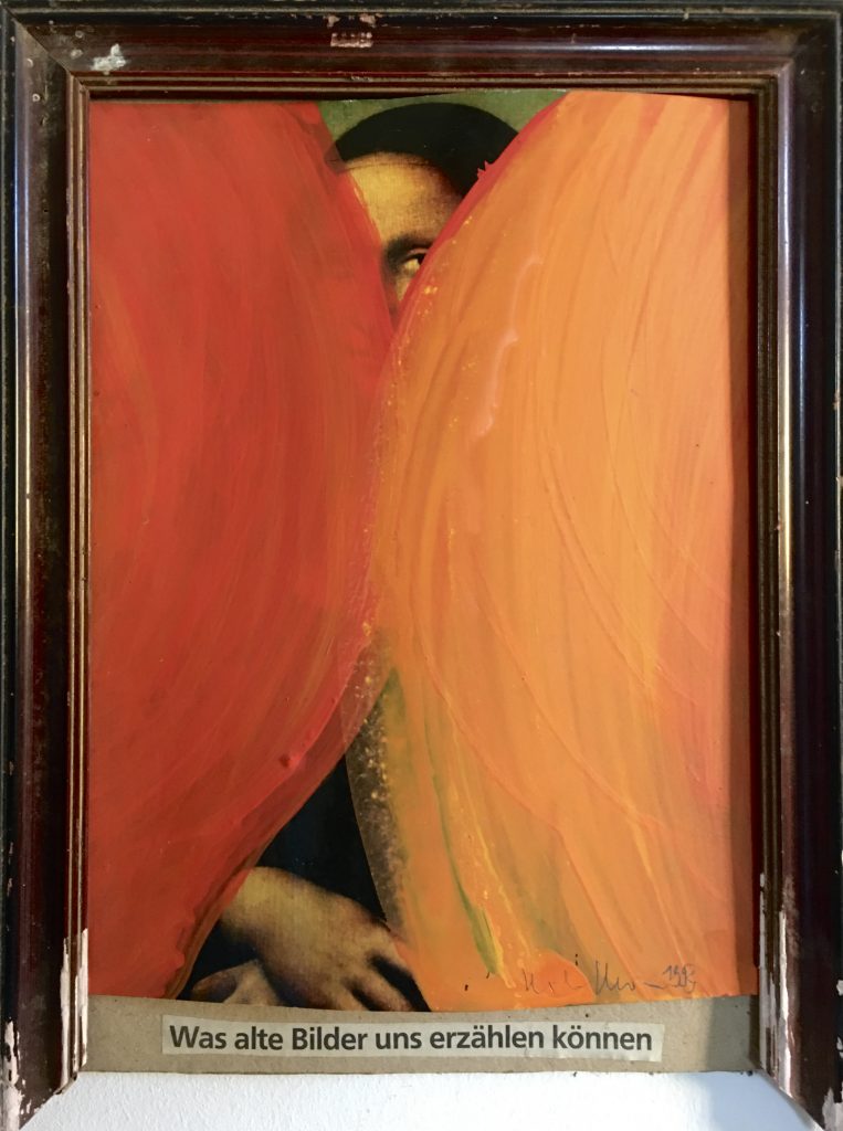 Den Anfang zur Idee dieser Ausstellung machte mein Aufenthalt in Paris 1995, ich wollte Postkarten schreiben an Freunde, doch es gab eigentlich nur MONA LISA Postkarten von Leonardo da Vinci. So beschloss ich, um nicht das ewig Gleiche zu verschicken, Mona Lisa zu übermalen. Jahre später in meinem Atelier in Pertolzhofen hing so eine Übermalung an der Wand und bei den „Pertolzhofener Kunstdingertagen“ klebte Heribert Heindl eine Textzeile unter die Übermalung: „Was alte Bilder uns erzählen können“.