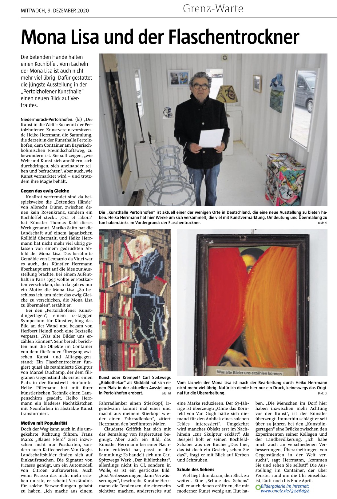 Bei einem Besuch bei Axel Heil in Karlsruhe sah ich einen Flaschentrockner rumstehen, und fragte Axel, hallo den brauche ich um Flaschen zu trocknen! Axel, „Ja aber, das ist der gleiche, den Marcel Duchamp 1914 als READY-MADE-SKULPTUR erkoren hat…..Bei mir diente er Jahre als Flaschentrockner, jetzt steht er in der Kunsthalle Pertolzhofen als REAMINIMATION einer SKULPTUR von Marcel Duchamp.