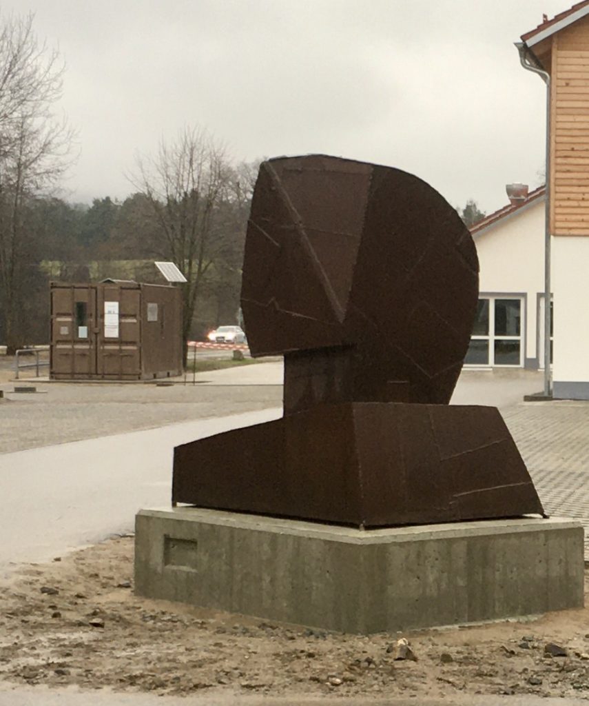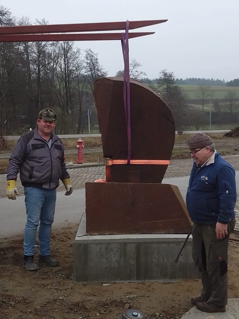 Inzwischen wurde die zweite Skulptur aufgestellt.